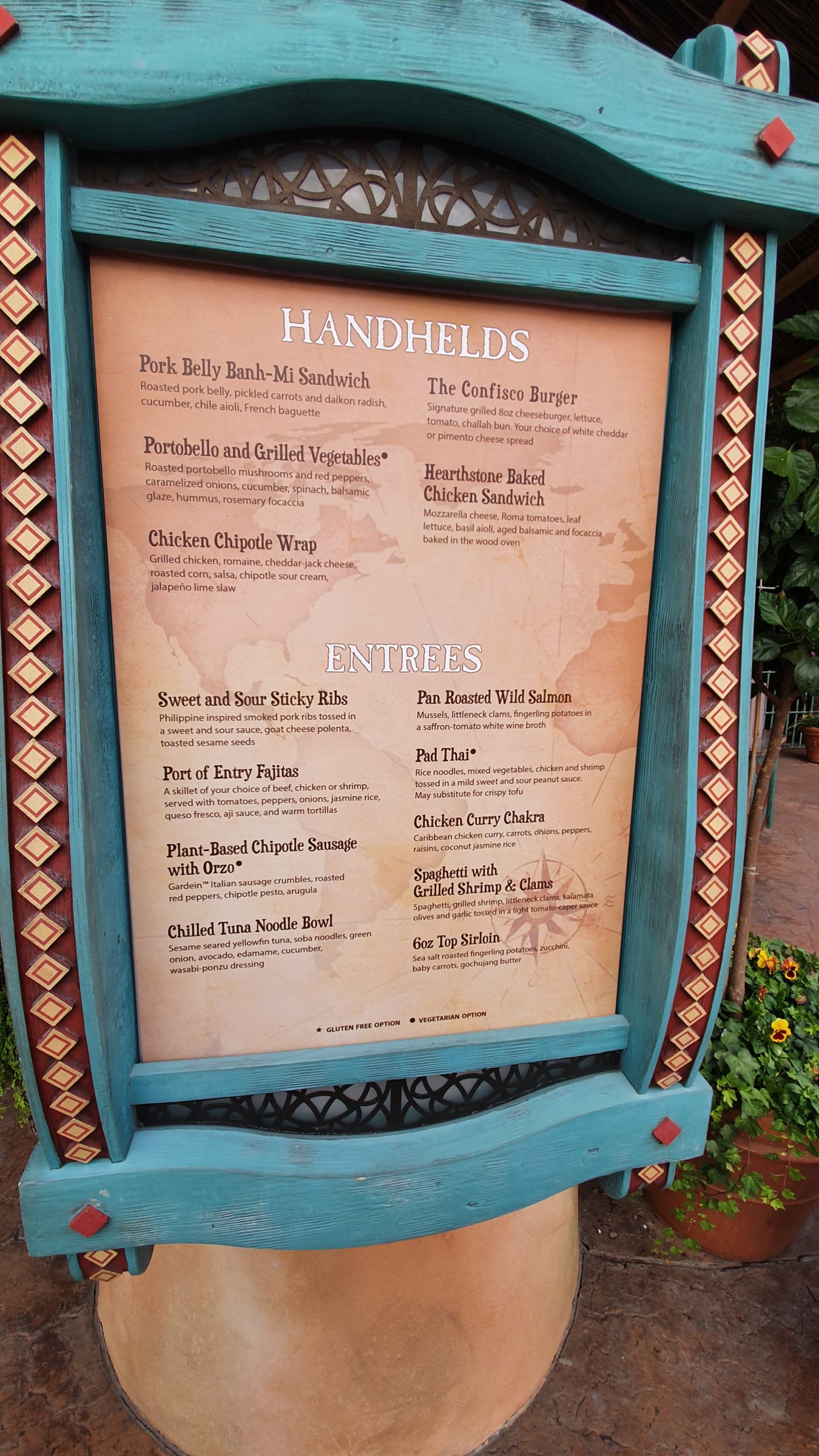 As with everything in Island Of Adventure, story elements of the park are woven throughout the restaurant. Serving as a rest spot for all explorers coming through the Port Of Entry, those Explorers who have visited in the past have left some mysterious artifacts and treasures from the different Islands.